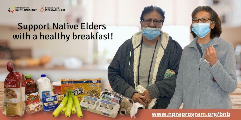 - PWNA’s Breakfast-in-a-Bag service, offered through its Northern Plains Reservation Aid program, assists Elders who are most in need of nutritious foods, especially during the third week of the month when their social security funds start to run out. PWNA-provided breakfast groceries can be picked up at a local grocery store on the Rosebud Reservation and end skipping breakfast to make ends meet. In 2021, Elders picked up more than 450 grocery bags with 10,000+ pounds of breakfast foods, a $10,500 investment in Native health and food security.